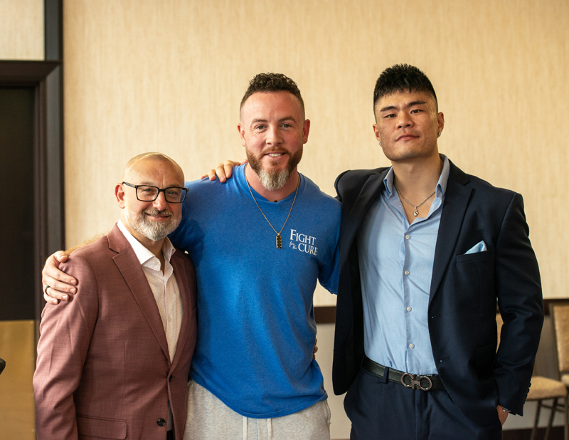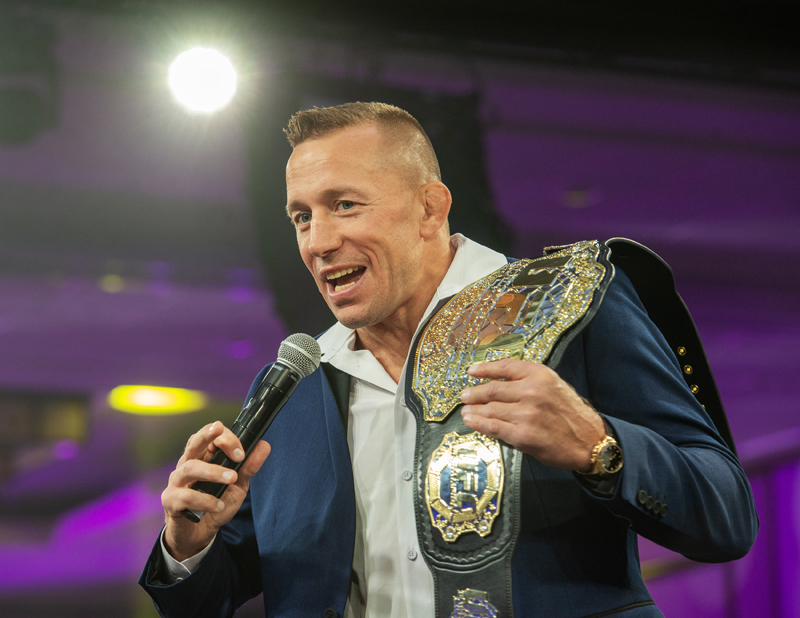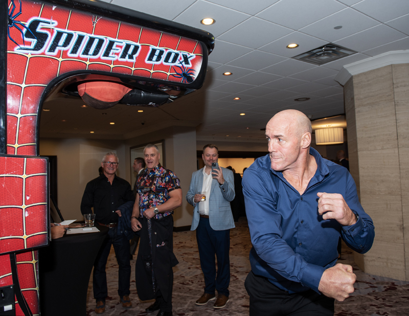 Stephane Payant taking his turn at a punching machine at Fight for the Cure, hosted at the Westin Ottawa on Oct. 18th, 2025. Photo by Tia MacPherson for OBJ.Kelly Judge and husband Randy Woods, two-time fighter (2009/2011) at Fight for the Cure, hosted at the Westin Ottawa on Oct. 18th, 2025. Photo by Tia MacPherson for OBJ.Randy Woods being challenged by emcee and past participant Walter Robinson at Fight for the Cure, hosted at the Westin Ottawa on Oct. 18th, 2025. Photo by Tia MacPherson for OBJ.Nathalie Legault and friend Divine Kirezy (wife of George St. Pierre) before the gala at Fight for the Cure, hosted at the Westin Ottawa on Oct. 18th, 2025. Photo by Tia MacPherson for OBJ.Legendary MMA fighter George St. Pierre addressing the crowd before the matches at Fight for the Cure, hosted at the Westin Ottawa on Oct. 18th, 2025. Photo by Tia MacPherson for OBJ.First match of the night, Matt Whitteker (Millions.co) vs. Ryan O’Connor (Unreserved Inc.) at Fight for the Cure, hosted at the Westin Ottawa on Oct. 18th, 2025. Photo by Tia MacPherson for OBJ.The high energy crowd encouraged the boxers at Fight for the Cure, hosted at the Westin Ottawa on Oct. 18th, 2025. Photo by Tia MacPherson for OBJ.Jen Arbuckle taking a punch from Shauna Bradley during their match at Fight for the Cure, hosted at the Westin Ottawa on Oct. 18th, 2025. Photo by Tia MacPherson for OBJ.Shauna Bradley gets a warm embrace at Fight for the Cure, hosted at the Westin Ottawa on Oct. 18th, 2025. Photo by Tia MacPherson for OBJ.Past boxers gathered for a group photo at Fight for the Cure, hosted at the Westin Ottawa on Oct. 18th, 2025. Photo by Tia MacPherson for OBJ.