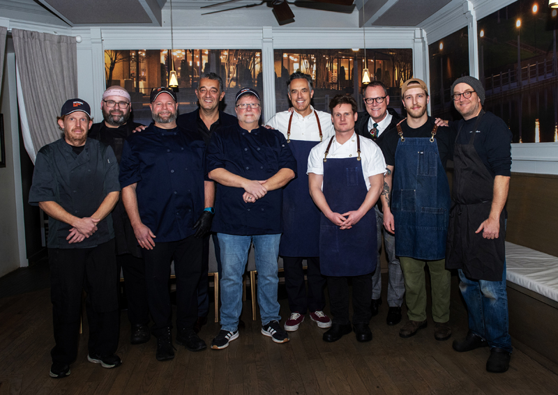 (L-R) Chef Bob Groenen (SOGH), Executive Chef Michael Korn (Harmon’s Steakhouse), Culinary Assistant Manager Tim Barton (SOGH), Kaveh Rikhtegar (SOGH Foundation Chair), Chef Peter Gareau (SOGH), Chef & Co-Owner Chris Schlesak (North & Navy and Cantina Gia), Chef & Co-Owner Adam Vettorel (North & Navy and Cantina Gia), John Peters (Gowling WLG), Chef Matt Robitaille (Grounded Kitchen) and Executive Head Chef Michael Radford (Whalesbone Group) at SOGH Foundation Grinch Dinner, Harmon’s Steakhouse, Nov. 27, 2025. Photo by Tia MacPherson for OBJ.