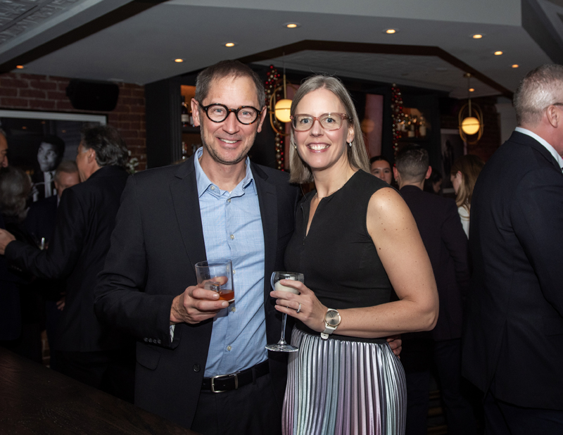 Ryan Kilger (Vincent Dagenais Gibson LLP) with wife Lucie Martin at the SOGH Foundation Grinch Dinner, Harmon’s Steakhouse, Nov. 27, 2025. Photo by Tia MacPherson for OBJ.