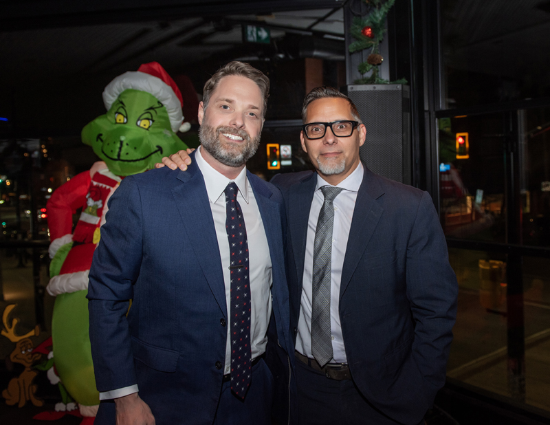 Craig Stehr and Cam Cameron (Gowling WLG) at SOGH Foundation Grinch Dinner, Harmon’s Steakhouse, Nov. 27, 2025. Photo by Tia MacPherson for OBJ.