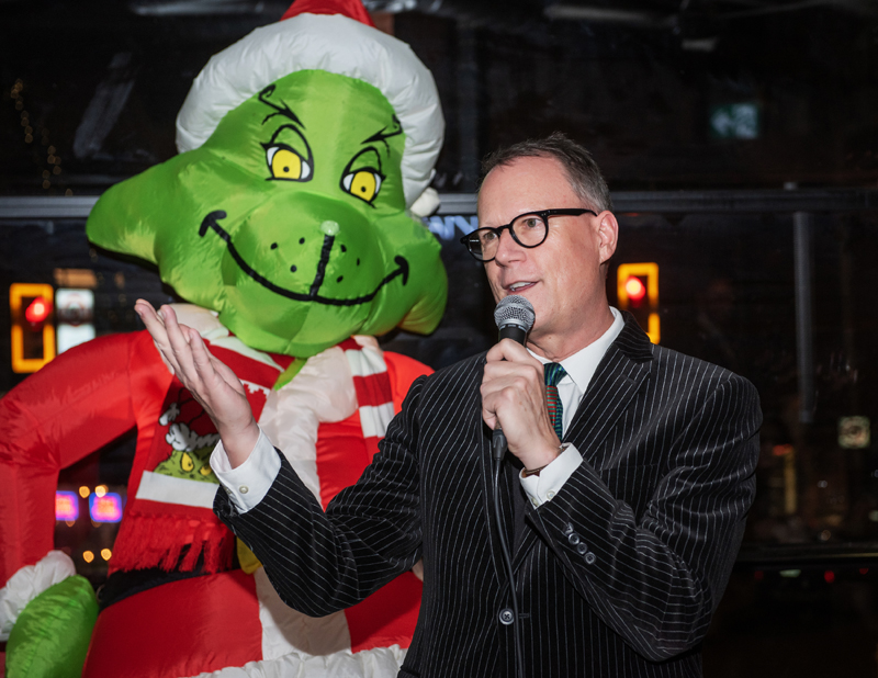 John Peters (Gowling WLG) welcomes attendees to the SOGH Foundation Grinch Dinner, Harmon’s Steakhouse, Nov. 27, 2025. Photo by Tia MacPherson for OBJ.