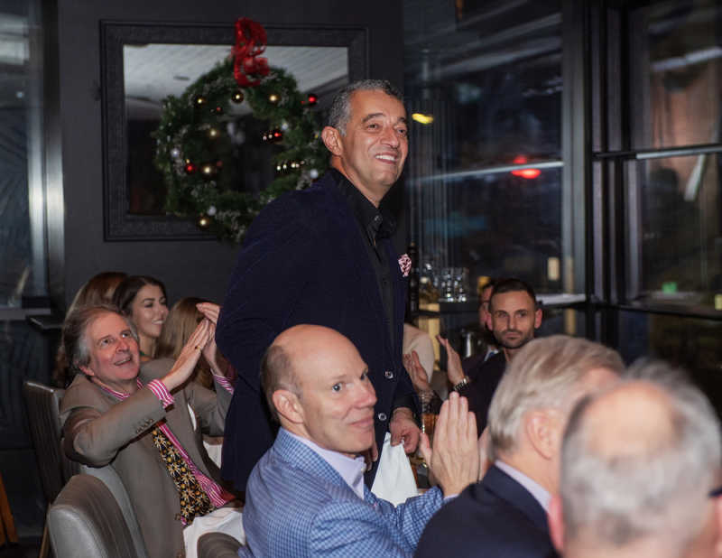 SOGH Foundation Chair Kaveh Rikhtegar being thanked by John Peters in opening remarks before the first course, at SOGH Foundation Grinch Dinner, Harmon’s Steakhouse, Nov. 27, 2025. Photo by Tia MacPherson for OBJ.