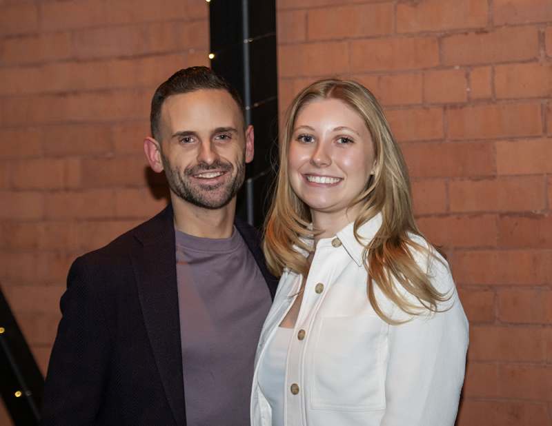 New SOGH Board Member Jason Hunt (First Avenue) with Emily Grey at SOGH Foundation Grinch Dinner, Harmon’s Steakhouse, Nov. 27, 2025. Photo by Tia MacPherson for OBJ.